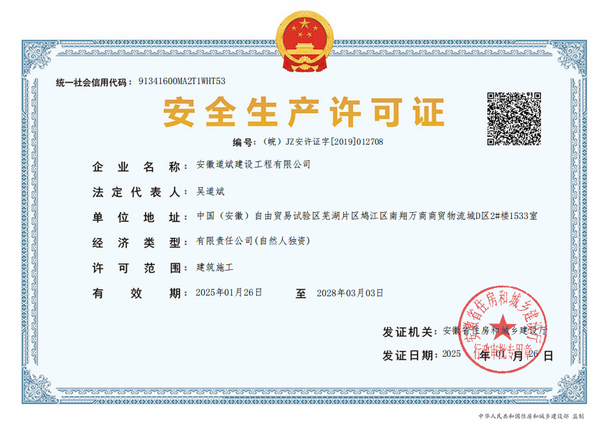 安徽道斌建設(shè)工程有限公司 版權(quán)所有 免責(zé)聲明 皖I(lǐng)CP備2021012659號(hào)-1 營(yíng)業(yè)執(zhí)照